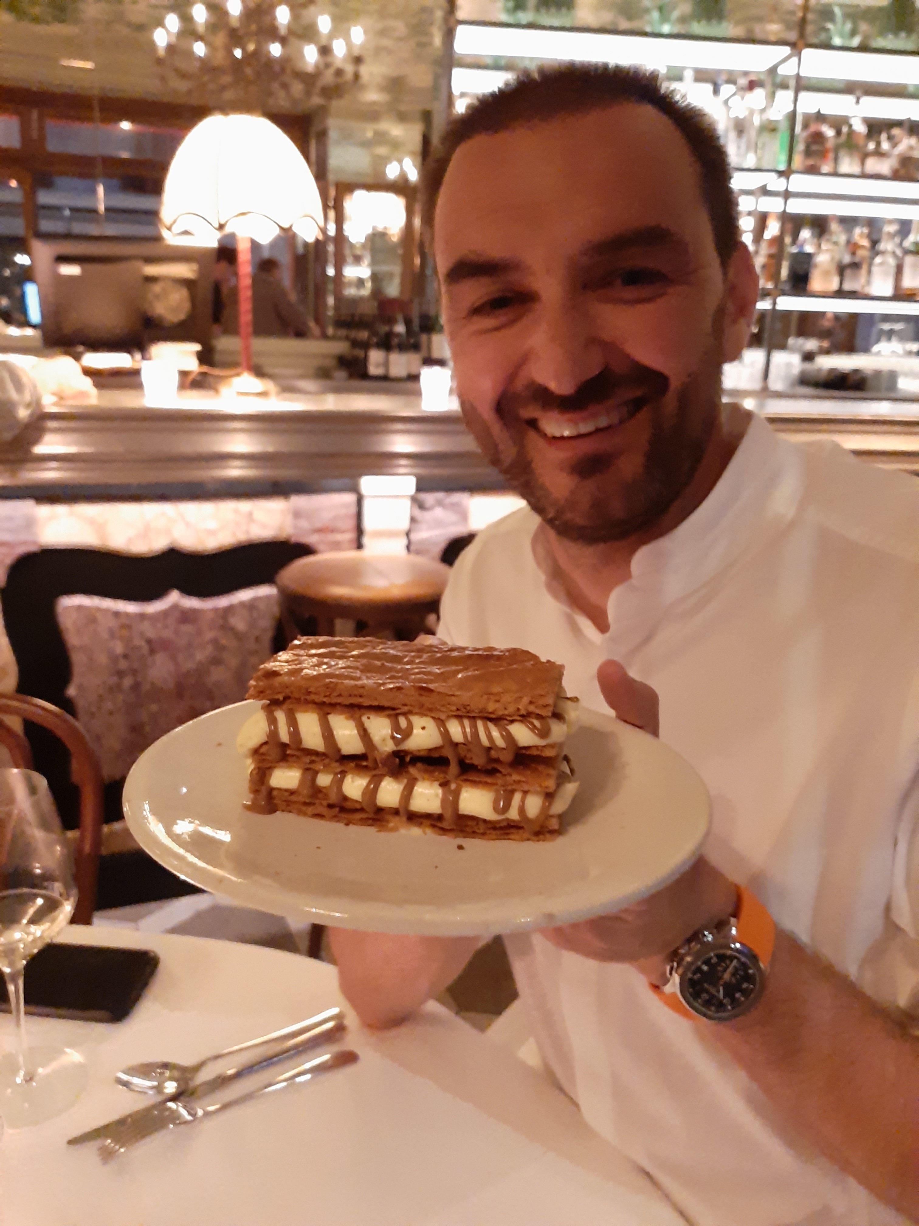 Originaire de Rodez, Cyril a débuté à Belcastel au restaurant du Vieux Pont en septembre 1997. Il avait tout juste 20 ans.Il a souhaité intégrer notre équipe pour effectuer un BP cuisine. Durant les deux ans passés chez nous, il également obtenu le CAP pâtisserie. Il dit que c’est ici qu’est née sa passion pour la cuisine. Nous sommes toujours restés très proches et avons toujours plaisir à nous rencontrer. Cette semaine, nous lui avons rendu visite au Chardenoux à Paris où le nouveau décor n’a d’égal que la merveilleuse cuisine de Cyril.