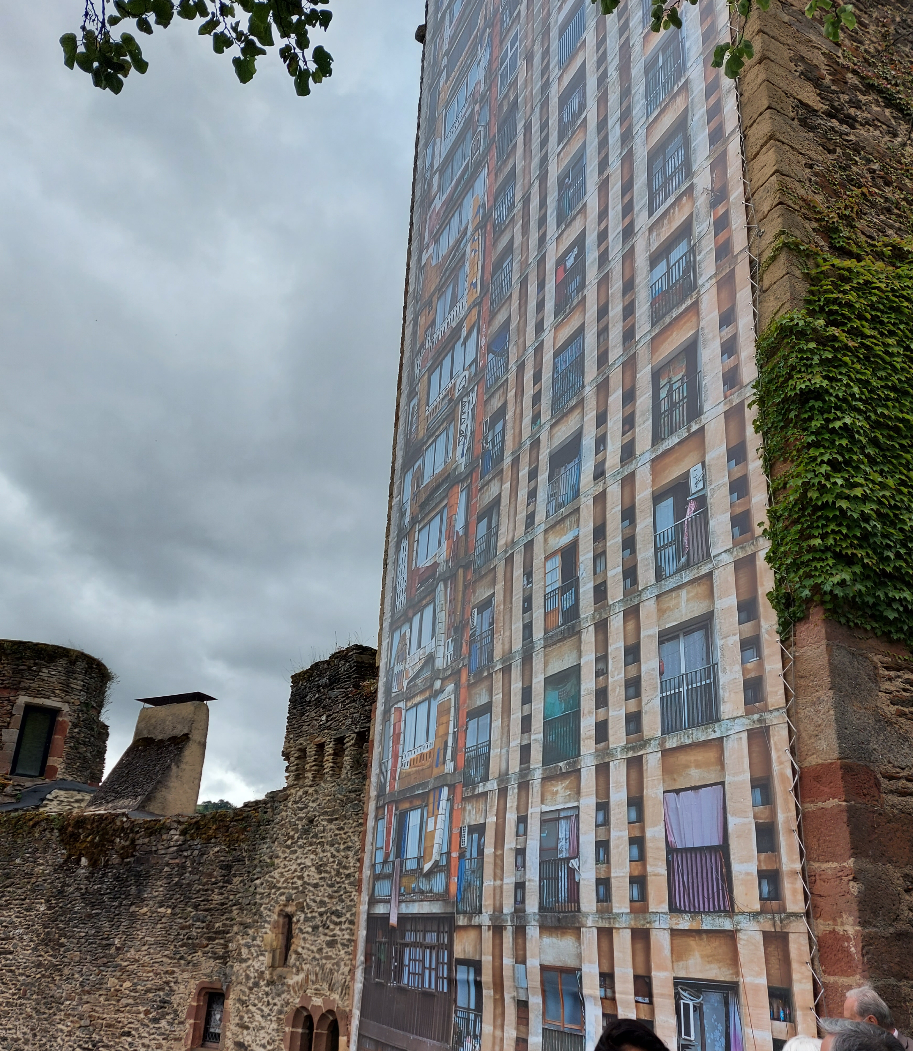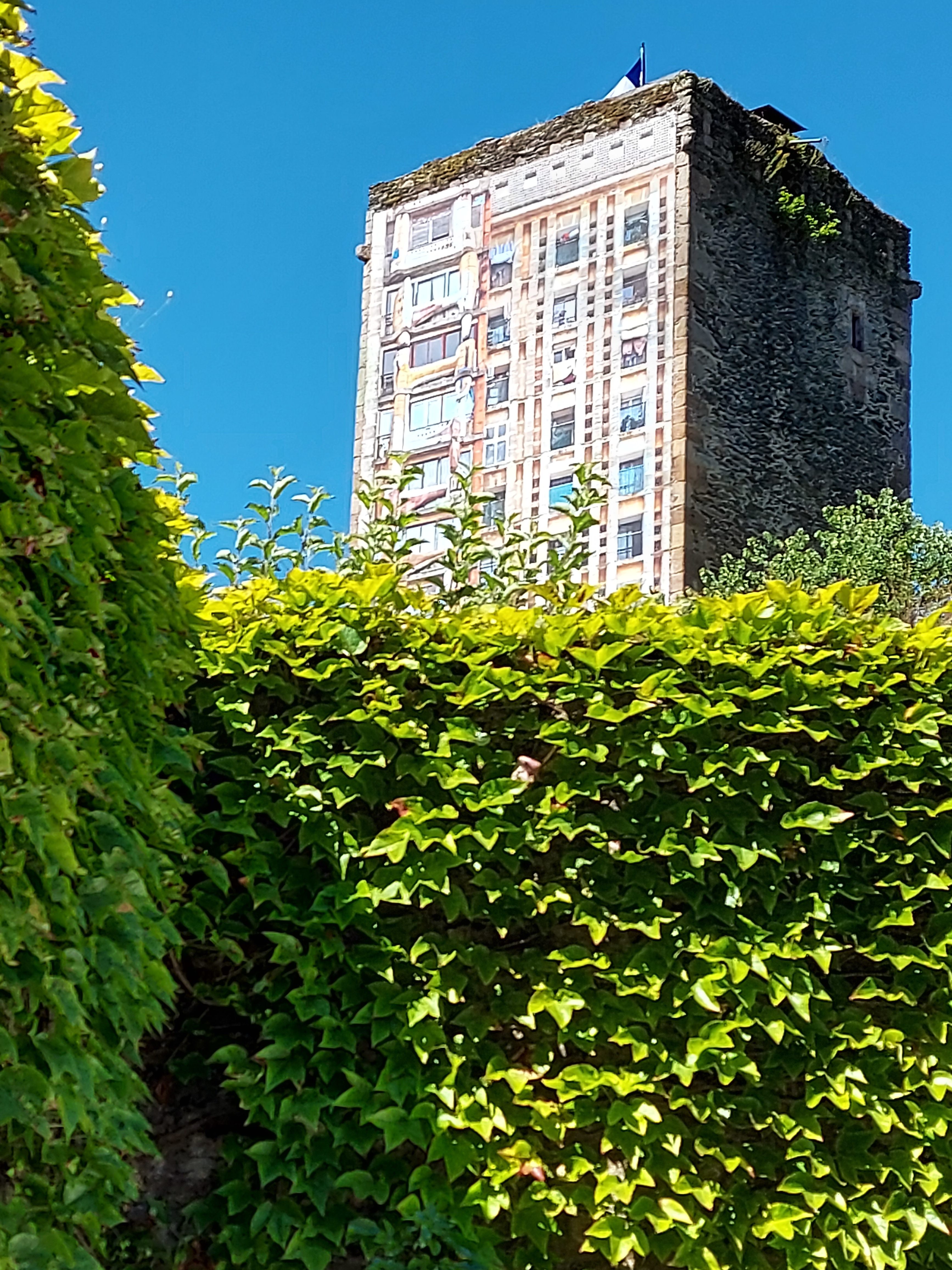Cette année, l’association l’Héritage de Fernand Pouillon rend hommage à ce dernier, cet architecte qui a merveilleusement restauré le château de notre village dans les années 1970. Une immense photographie recouvre tout un côté du donjon représentant la tour totem de la Cité du Bonheur à Alger qui avait été construite par Fernand Pouillon en 1954. La photo qui habille la tour est l’oeuvre du plasticien photographe Stéphane Couturier .