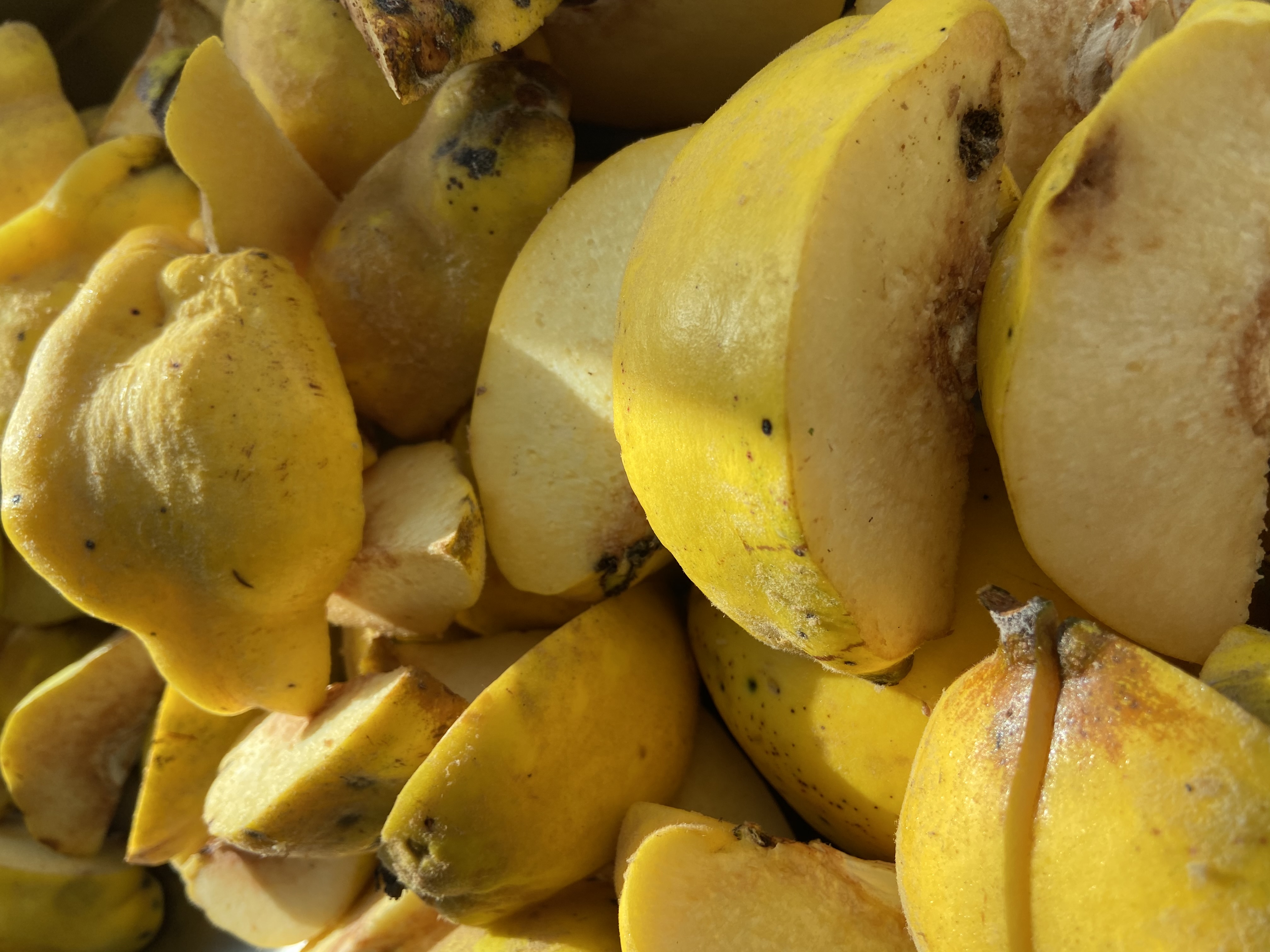 Beaucoup de coings cette année mais aussi beaucoup de temps ! C’est la raison pour laquelle Michèle vous livre sa recette d’eau de coing;