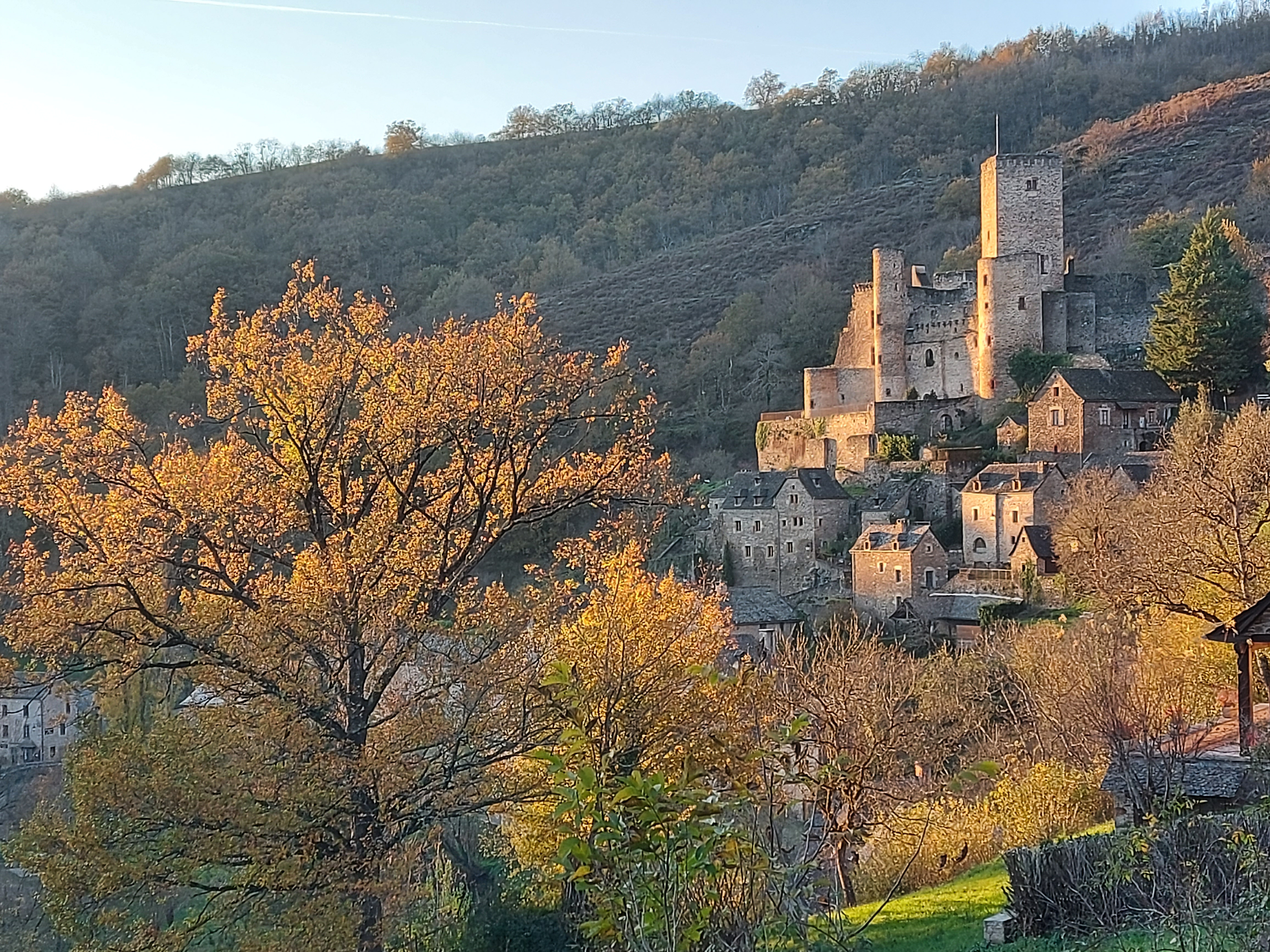 La Saint Martin est fêtée le 11 novembre. A cette date, en principe l’hiver commence à s’installer mais cette année, la douceur et le soleil sont de mise. Belcastel est calme, mis à part la trentaine d’habitants, pas de promeneurs ou de touristes. La nature est magnifique avec ses teintes jaunes ou cuivrées…je ne m’en lasse pas.
