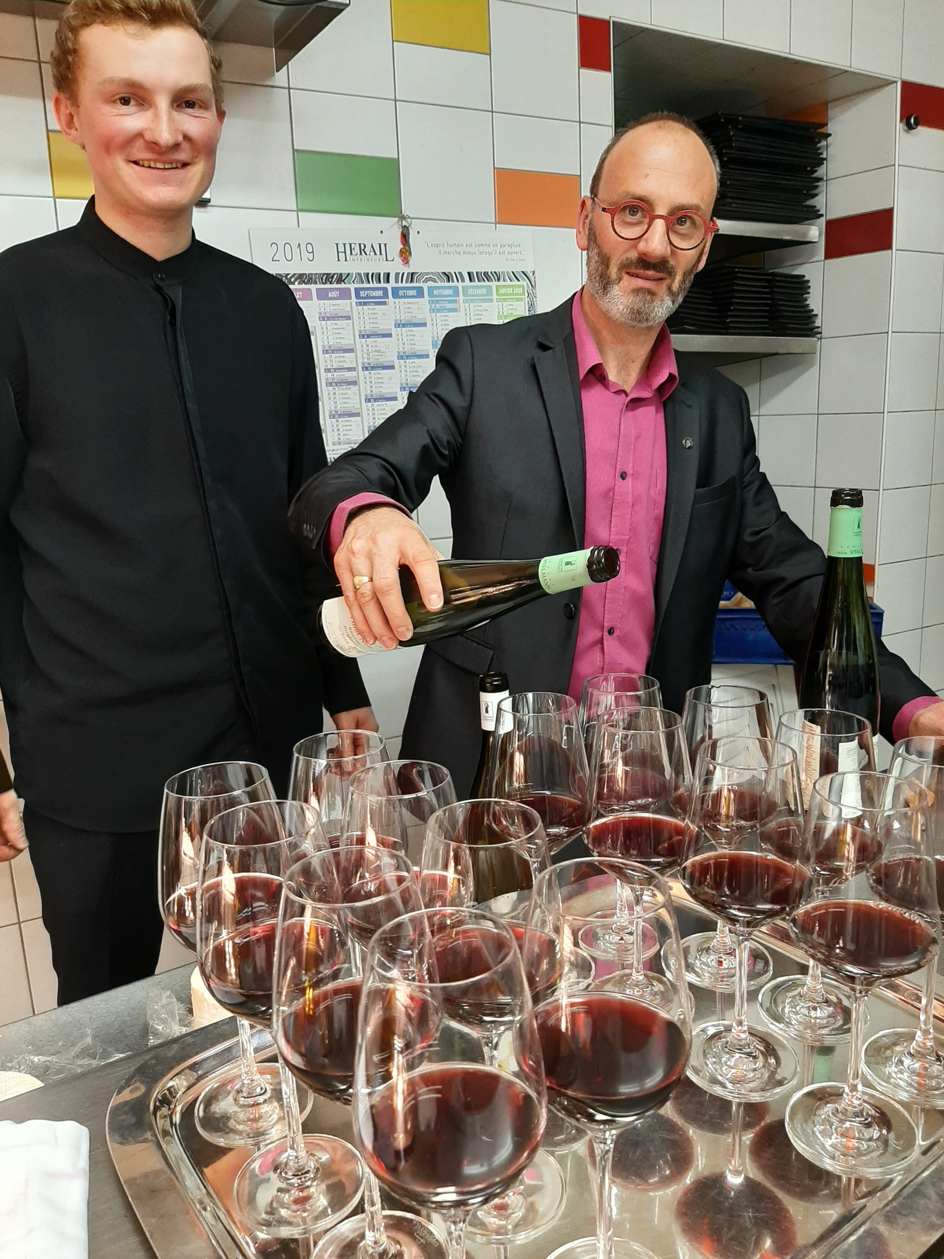 Chaque année, nous organisons une ou soirées « accords mets et vins » où nous recevons un vigneron présent sur notre carte des vins. Cette année ce sont deux vignerons (en couple dans la vie) qui ont animé la soirée. Jean-Claude RATEAU est vigneron en Bourgogne Hautes Cotes de Beaunes et Sylvie SPIELMANN en ALSACE. Les deux vignobles sont en Biodynamie.